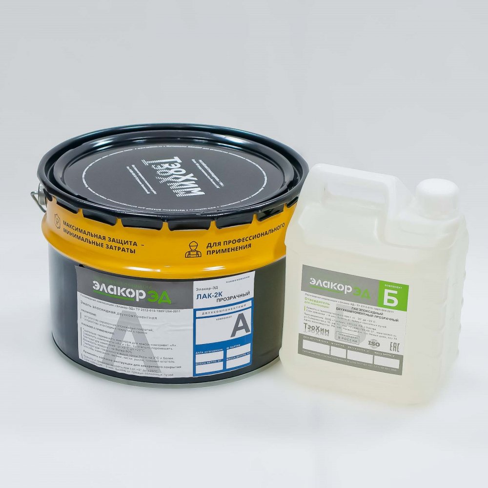 Лак-2К - эпоксидный лак (прозрачный бесцветный)"Эпоксидный лак – Элакор-ЭД Лак-2К – двухкомпонентный, полностью прозрачный, светостойкий. Не содержит растворителей, сухой остаток – 100%, не имеет запаха при нанесении. Минимальный объем покупки - 14,6 кг.